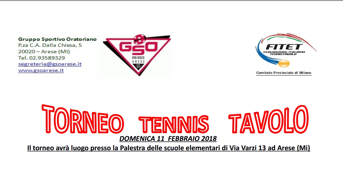 Domenica 11 febbraio torneo provinciale ad Arese (MI)