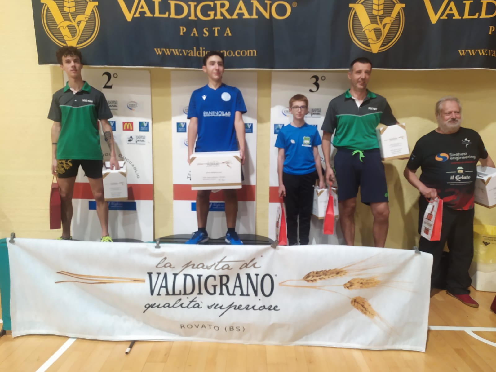 A Coccaglio erano in programma anche le gare di quinta e sesta categoria maschile: nel quinta è il TT Angera a festeggiare il successo di Louis Bruno Villa che sbaraglia la concorrenza e vince per 3-1 la finale su Filippo Ferrari che dopo aver conquistato il primo set cede al tesserato del TT Angera.